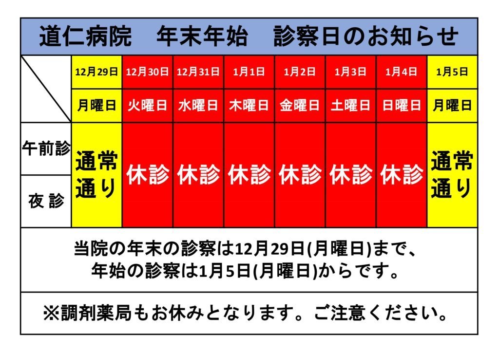 令和7年年末(令和8年年始) 診察日のお知らせ